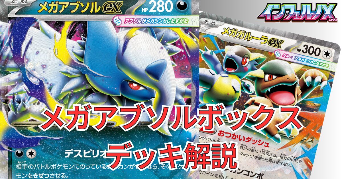 こんな悩みはありませんか? 対戦してもなかなか勝率が上がらない 使用してみたいけど、デッキの使い方が分からない 参考のデッキレシピが知りたい この記事では、初心者・中級者向けに、デッキの特徴・デッキリスト・基本的な回し方を解説します。 【メガアブソルex】×【メガガルーラex】デッキの特徴 【メガアブソルex】×【メガガルーラex】デッキの強み 高耐久を活かせる ドローサポートが優秀 ハンデスができる ①高耐久を活かせる たねのメガシンカexポケモンがメインとなっており、序盤から高耐久を活かせます。【勇気 ...