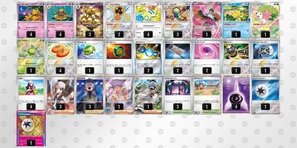 • 終盤は【リップ】でリソース回収をしたいです。超エネルギーを含め、【フーディン】の進化ラインを一気に回収できます。