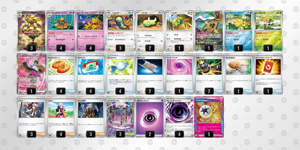 メインアタッカーの【フーディン】が非ルールポケモンです。相手に倒されてもサイドを1枚しか進められません。