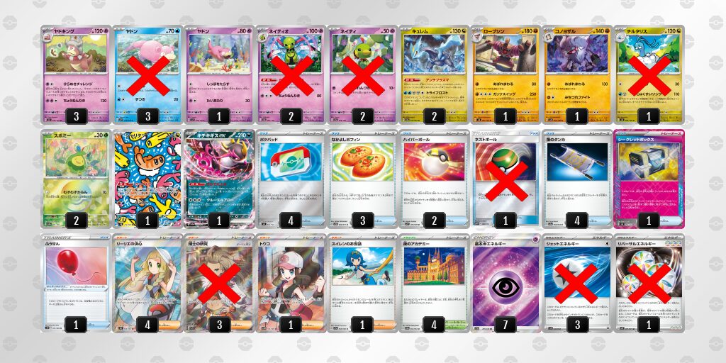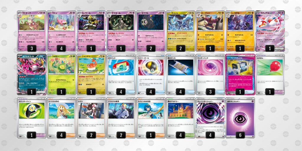 採用されているポケモンは、レギュ落ちの影響を受けておらず、新レギュでも活躍が期待できるデッキです。【ヤドキング】のワザ「ひらめきチャレンジ」で非ルールポケモンのワザをコピーして使えます。