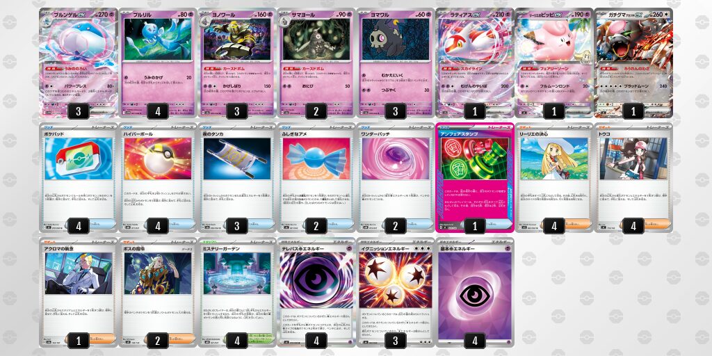 新弾で【テレパスちょうエネルギー】が収録されることが判明して注目を集めているデッキ。【ペパー】から【プレシャスキャリー】でポケモンを展開していましたが、【テレパスちょうエネルギー】で安定して超ポケモンを展開できるため、問題はなさそうです。