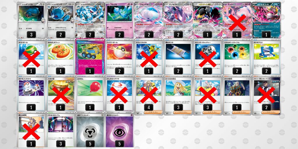ダイゴのポケモンがIレギュ、他の採用されているアタッカーもレギュ落ちしないため、新環境でも戦えるデッキです。
