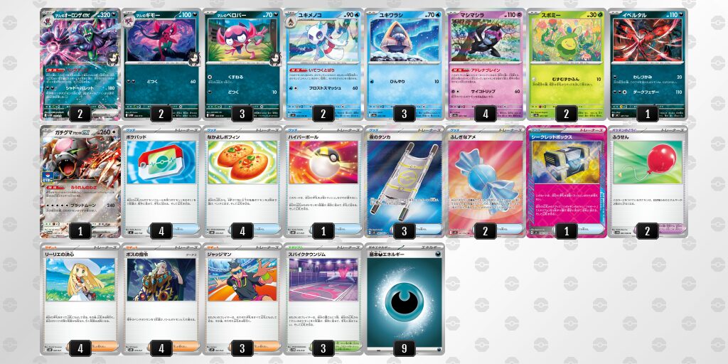 マリィのカードがIレギュのため、まだまだ長く使えるデッキとなります。デッキの核となる【ユキメノコ】、【マシマシラ】もまだ健在です。