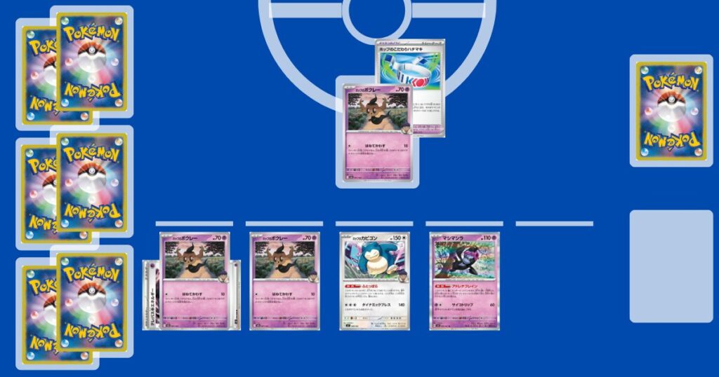 序盤のポケモンの展開は非常にしやすいです。【テレパス超エネルギー】、【ホップのバック】を中心にたねポケモンを展開していきましょう。