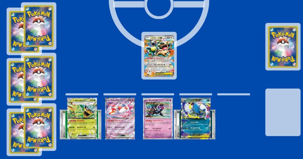 【ラティアスex】は、ベンチとすぐに入れ替われるため、相手デッキに合わせたアタッカーへ柔軟に切り替えられる点が大きな強みです。