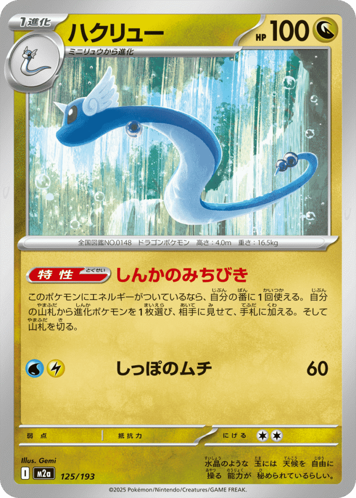 【ハクリュー】の特性「しんかのみちびき」が優秀です。エネルギーがついているなら進化ポケモンをサーチできます。