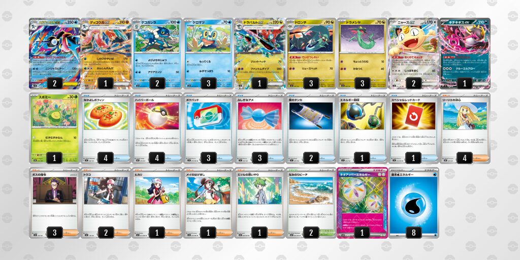 特に、山札から水エネルギーをサーチできる手段が限られているため、どのように水エネルギーを安定して手札に供給するかが構築・プレイの大きなポイントになります。
