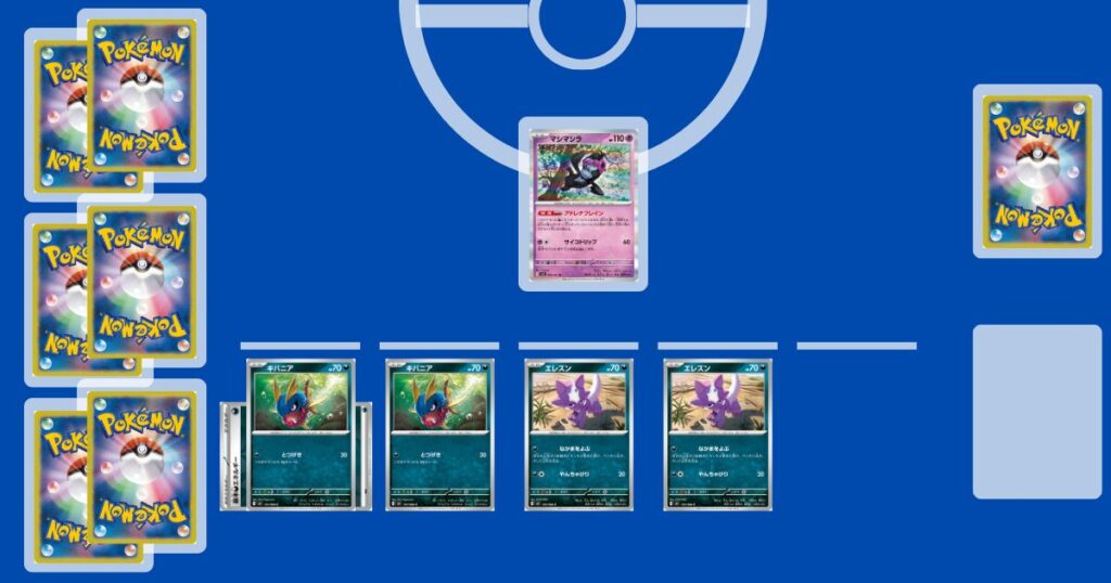 - ベンチ:【エレズン】×2体、【キバニア】×2、相手に応じて【コダック】or【シェイミ】
